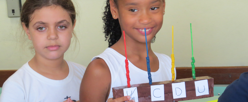 Por isso, os estudantes matriculados no 4º Ano do Ensino Fundamental do Colégio Notre Dame Ilha confeccionaram ábacos.
