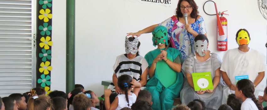 Foi, justamente, com o objetivo de apresentá-las os educandos, envolvendo-os no seu contexto de fantasia e imaginação e motivando-os a construir saberes, que, em março, as docentes responsáveis pelas turmas promoveram dramatizações e contações das narrativas.