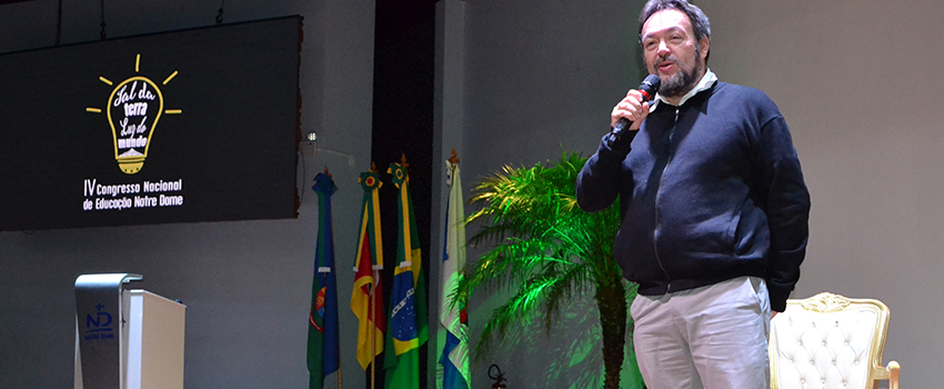 Os inscritos no IV Congresso Nacional de Educação Notre Dame participaram, nesta tarde, da conferência “As práticas escolares e as relações sociais: educar para a vida”, ministrada pelo filósofo, historiador, pedagogo e doutor em Educação, César Nunes.