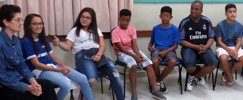 Durante o Encontro de Ex-alunos, os adolescentes vivenciaram um momento de reflexão, motivado pelo filme “A Corrente do Bem”. IMG_4406Eles, também, visitaram os diferentes espaços pedagógicos do educandário e reencontraram docentes, estudantes e funcionários que, até o 5º Ano do Ensino Fundamental, fizeram parte do seu cotidiano.