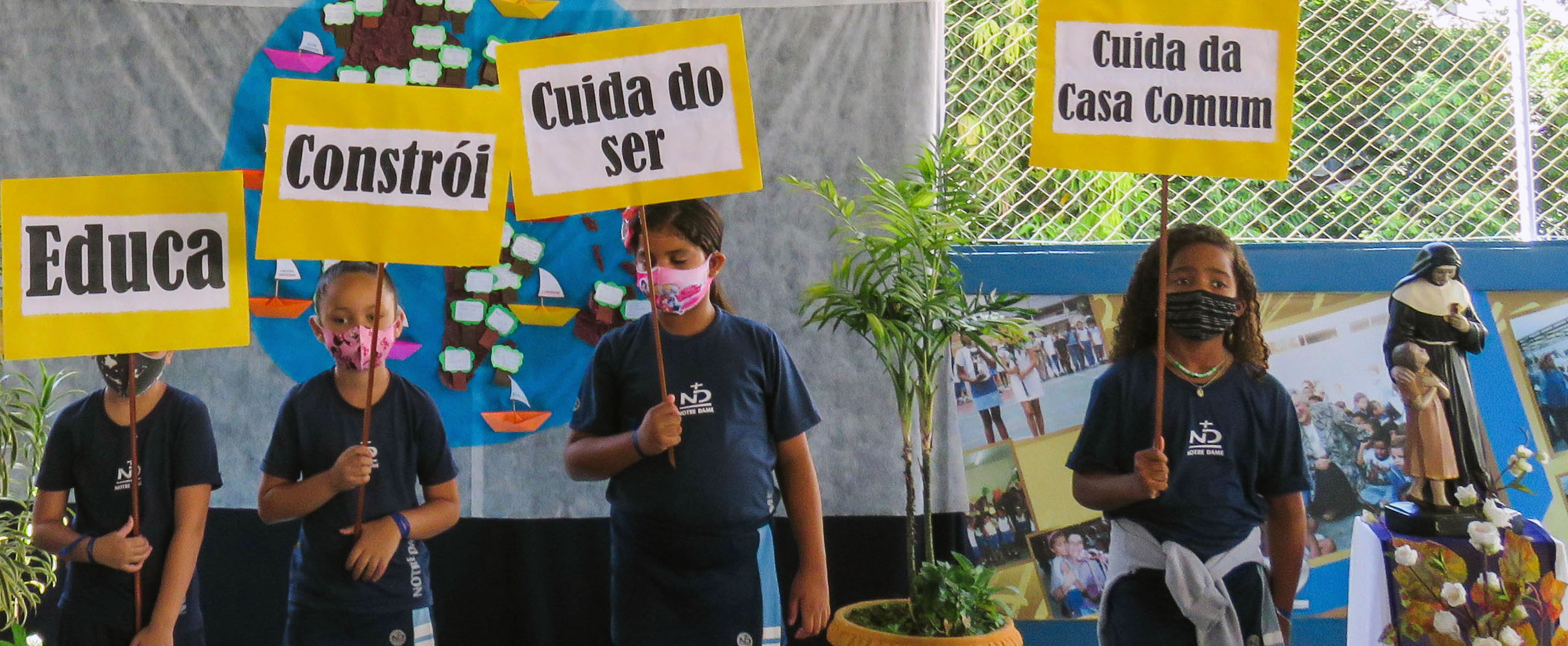 Reunindo discentes e docentes do Colégio Notre Dame Ilha, bem como as Irmãs que integram a comunidade escolar e os funcionários que atuam nos setores administrativos e de conservação da instituição de ensino, um momento de espiritualidade, realizado em 11 de março, oportunizou a reflexão acerca da realidade educativa do Brasil. Afinal, motivada pelo tema que norteia a Campanha da Fraternidade deste ano – “Fraternidade e Educação” -, a programação convidou os diferentes partícipes à análise, sob a perspectiva da escolaridade e, igualmente, da família e da sociedade, dos meios de que se dispõe para fomentar uma cultura humanista e a solidária.