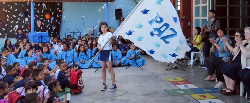 Orientadas pelo educador responsável pelo ensino de Música, Leonardo Salgado, as crianças entoaram Heal the Word e Paz pela Paz. Em seguida, o grupo de flautas – composto por estudantes matriculados no 4º e no 5º Ano do Ensino Fundamental – apresentou as músicas Hallelujah e Somewhere Over the Rainbow, além de composições brasileiras emblemáticas, como Asa Branca e Xodó.